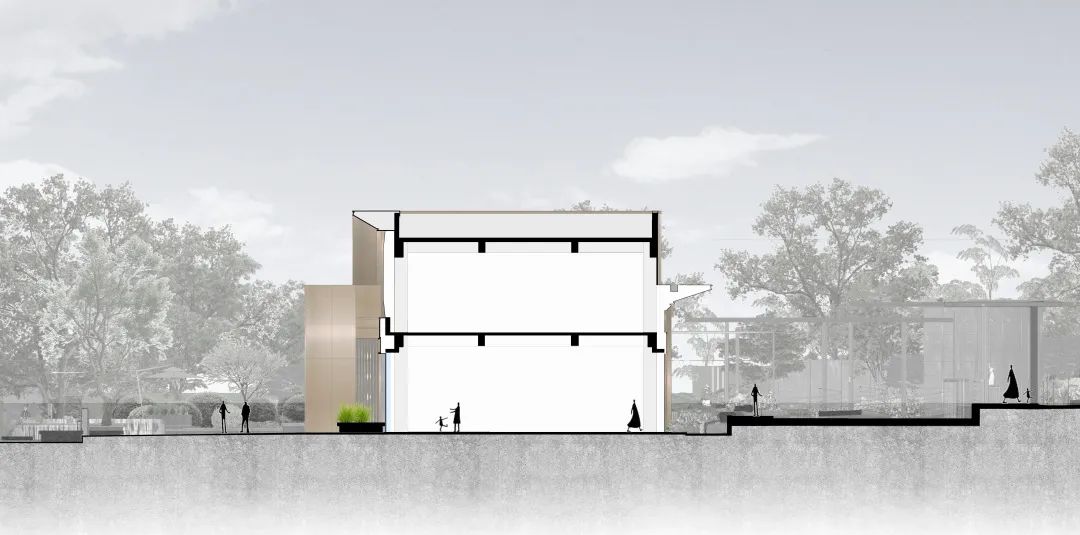 基地?fù)碛薪?1m的超大尺度沿街展示面,設(shè)計以三個體量互相疊合的方式形成建筑主體,通過拉長城市界面來增強(qiáng)對區(qū)域的控制力。以強(qiáng)化歸家大門為出發(fā)點,建筑形體簡潔,以L型入口門廳體量作為刻畫重點。