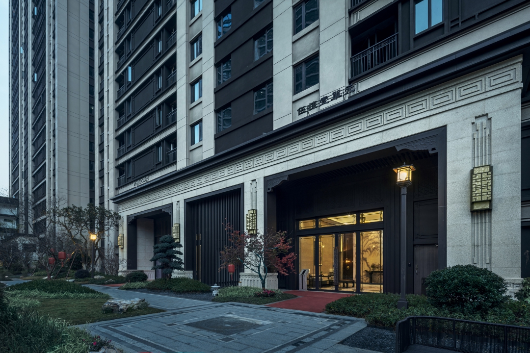 項(xiàng)目大門著重打造,謂之府門,門內(nèi)禮序,門外文明,入口大門以雙開官帽式大門設(shè)計(jì)。大門飾以鑲金匾額、門前造景對仗排布,遵循府邸禮序,以蓬勃大氣,造禮賓之景。整個入口采用中國哲學(xué)“至大中正,對稱中軸”的理念,展現(xiàn)大氣典雅的項(xiàng)目基調(diào)。