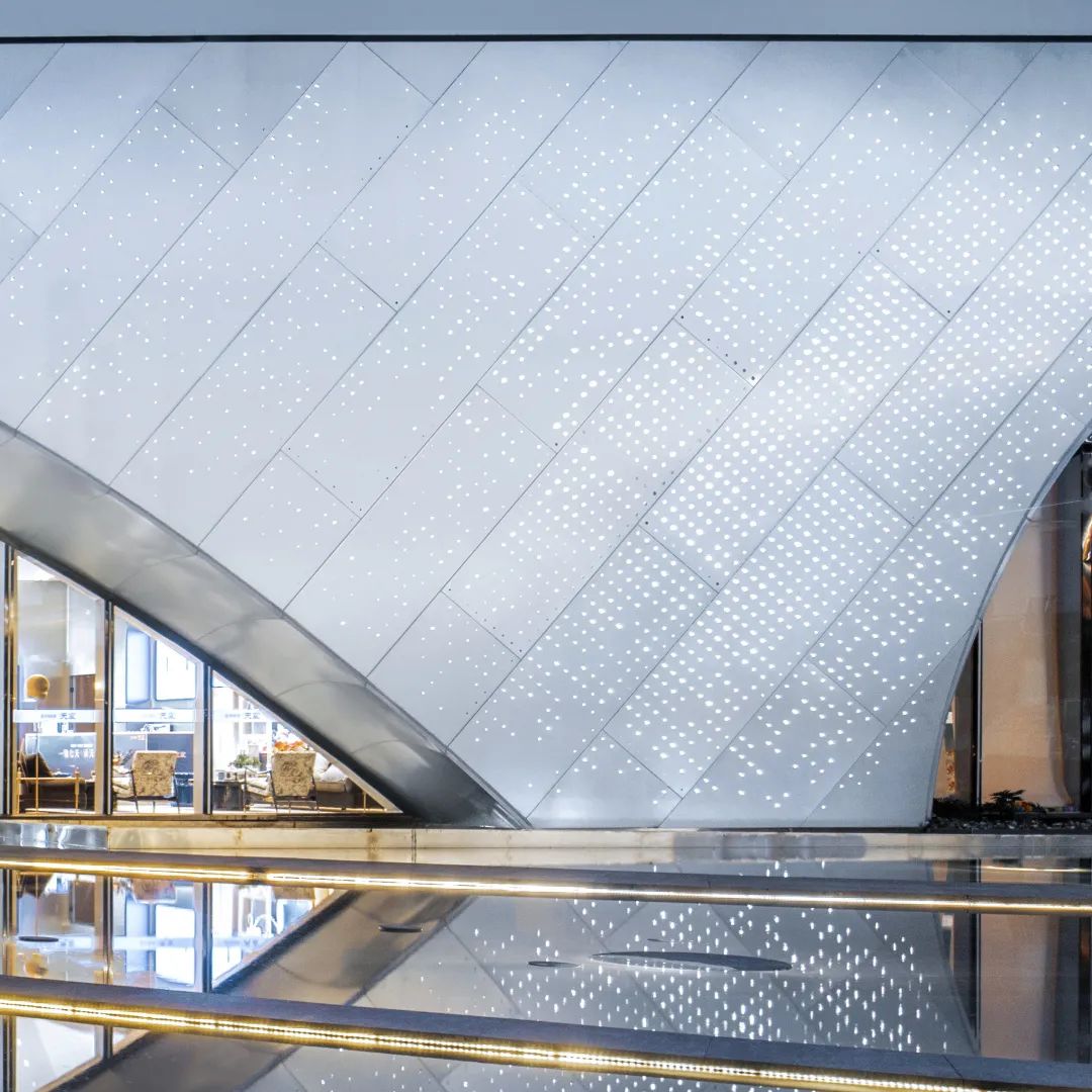 材料的構(gòu)造,細(xì)節(jié)的把控依然是我們設(shè)計追求的品質(zhì),鋁板表面的穿孔細(xì)心考究,結(jié)合燈光設(shè)計營造出氣泡緩緩上升的感覺,輕盈動感。