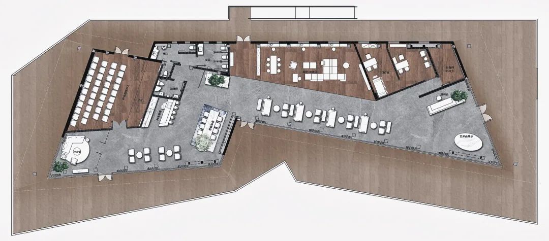 在功能分區(qū)上,最大化地利用場(chǎng)地及室內(nèi)外的優(yōu)劣勢(shì)條件,合理地進(jìn)行布置。在重要的展示面上,展示最美的展廳。