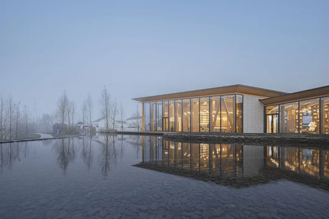玻璃幕墻與木結(jié)構(gòu)坡屋頂是建筑的主要元素,它用輕巧的結(jié)構(gòu)定義了建筑的室內(nèi)特征,又在外部營(yíng)造了極具識(shí)別性的形象。