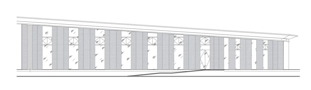 建筑最顯著的特點(diǎn)是利用向中央傾斜的屋頂,在從南到北的環(huán)境中繪制出可識(shí)別的標(biāo)志。