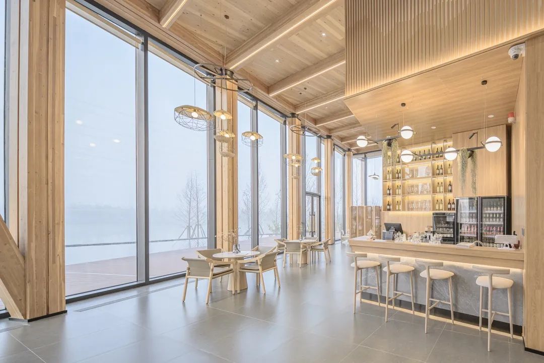 項(xiàng)目著重體現(xiàn)自然、田園、舒適的空間氛圍,重點(diǎn)詮釋木結(jié)構(gòu)空間完整性和體現(xiàn)木結(jié)構(gòu)梁柱的序列感,通過(guò)開(kāi)敞的空間布局方式,營(yíng)造出空間與建筑之間統(tǒng)一性,體現(xiàn)木結(jié)構(gòu)空間張力與自然美學(xué)氛圍。