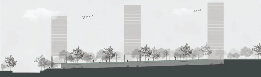 不僅可以擁有公共的活動空間,更享受了半開放的鄰里場所。加強了住宅內外部空間的連續(xù)性,使人更貼近自然。架空層作為城市空間和居住空間的鏈接,同時具有了人情味的自然空間,體會全齡化的共享社區(qū)。