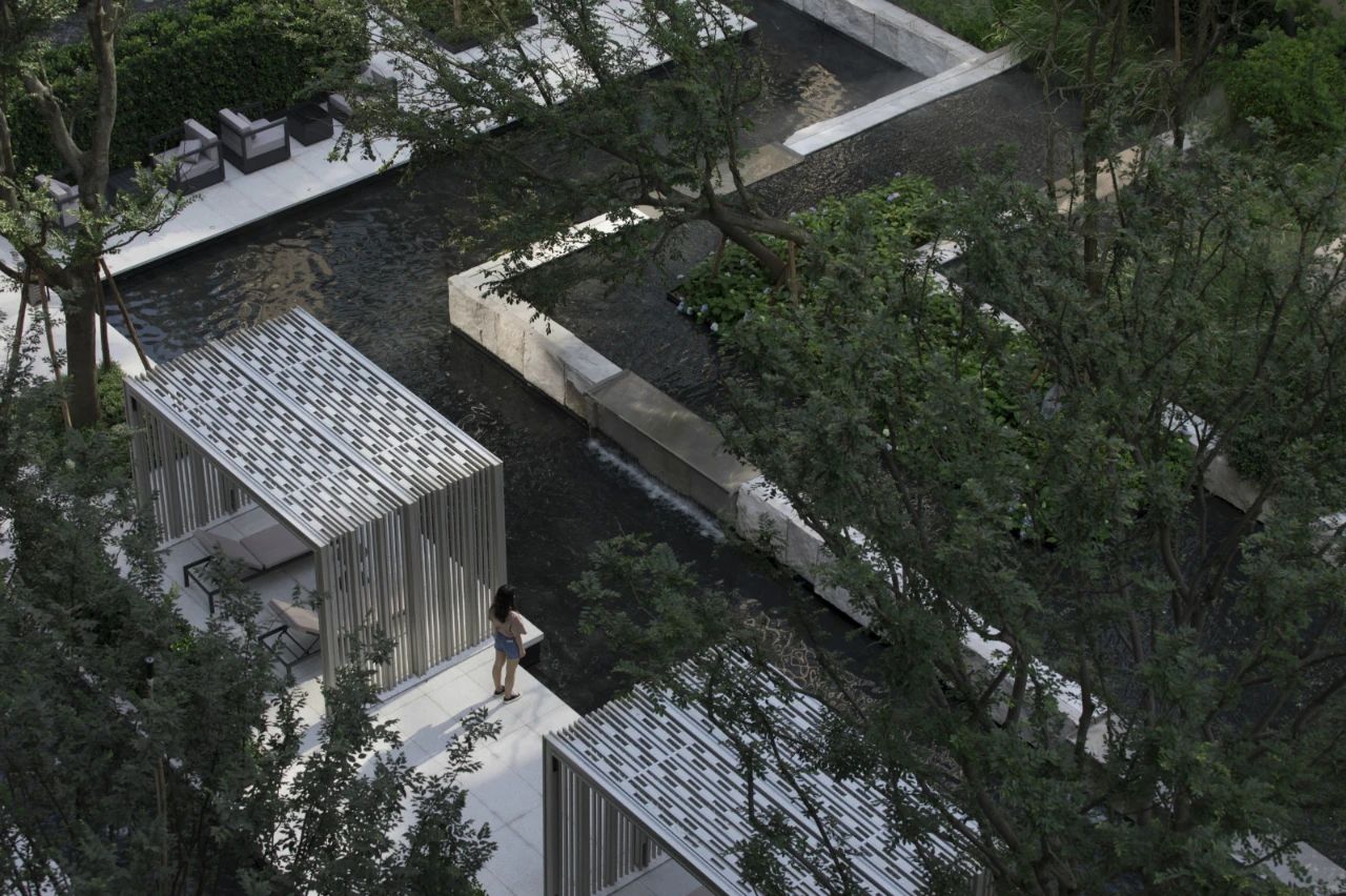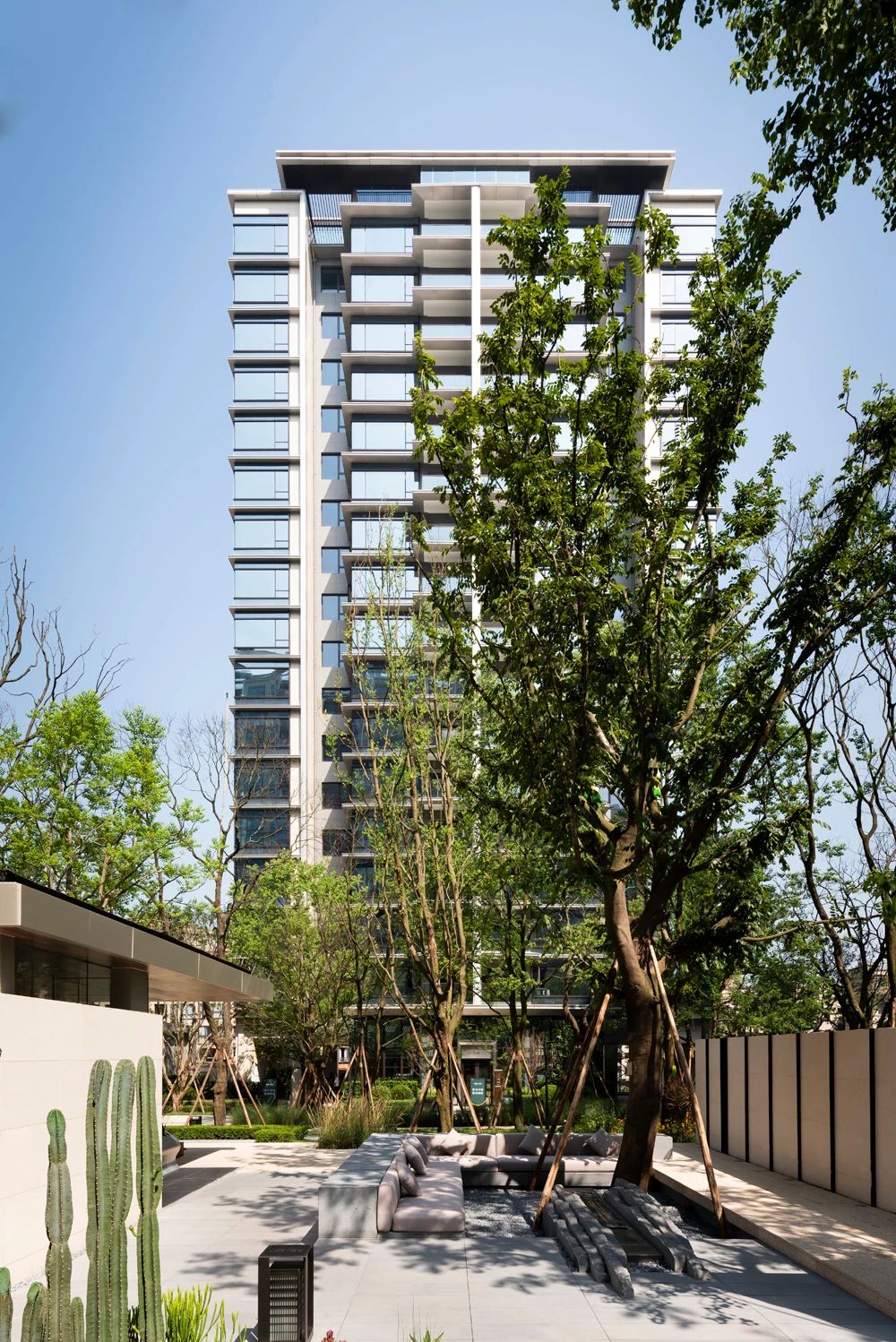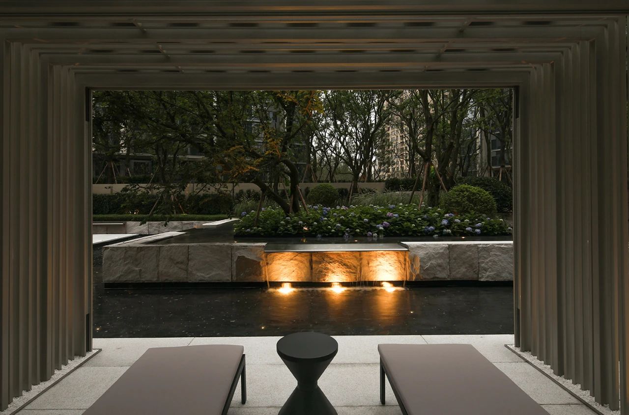 走進場地感受陽光、樹木、花草、流水跟環(huán)境的默契,酒店化的功能又體現(xiàn)出比較高的居住品質。比較平衡的尋找都市生活和自然環(huán)境的關系,找到種回歸生活本質的感受。