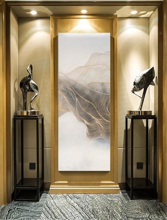 入園大堂是塵林間的第二層入口。精致的玫瑰金鋁板上是樹的投影,青銅與巖石的和諧結合,宣告了這個空間的藝術性。