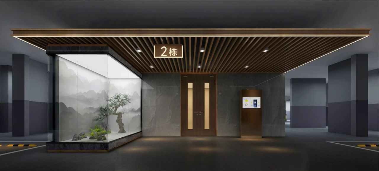 塵林間的車庫體系,也體現(xiàn)了別致的歸家動線。一般的項目,通常會忽略車庫的設計,但塵林間卻特別用心,在車庫電梯口設計了千孔燈,讓燈光通亮的歸家禮序帶你回家。