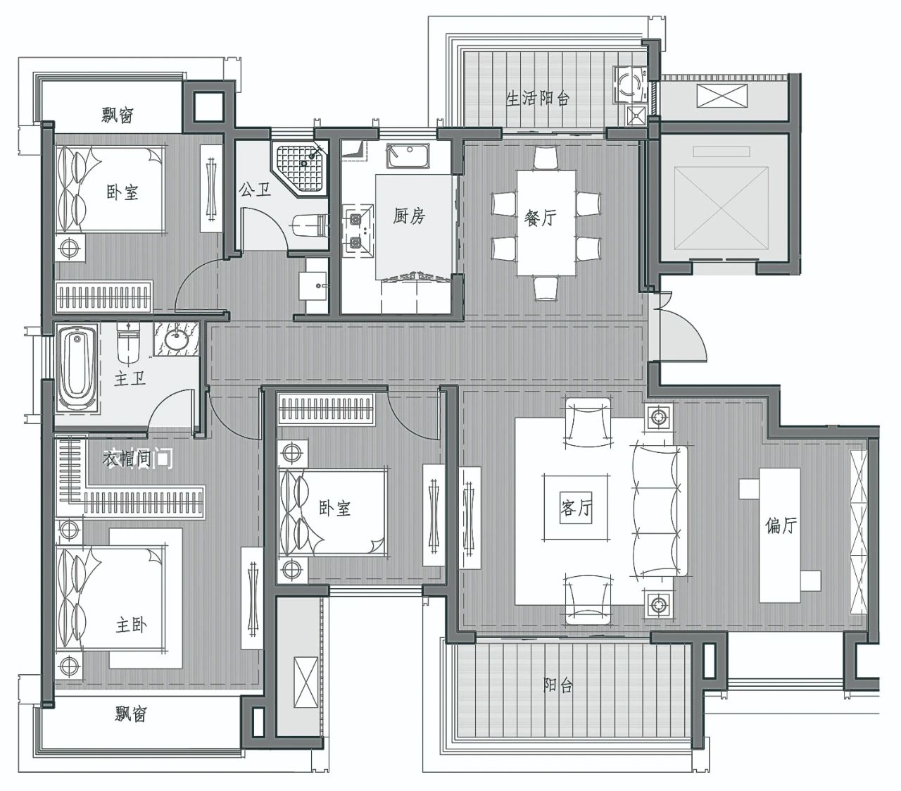 超豪華主臥套:飄窗、陽臺大面積贈送,生活更舒適