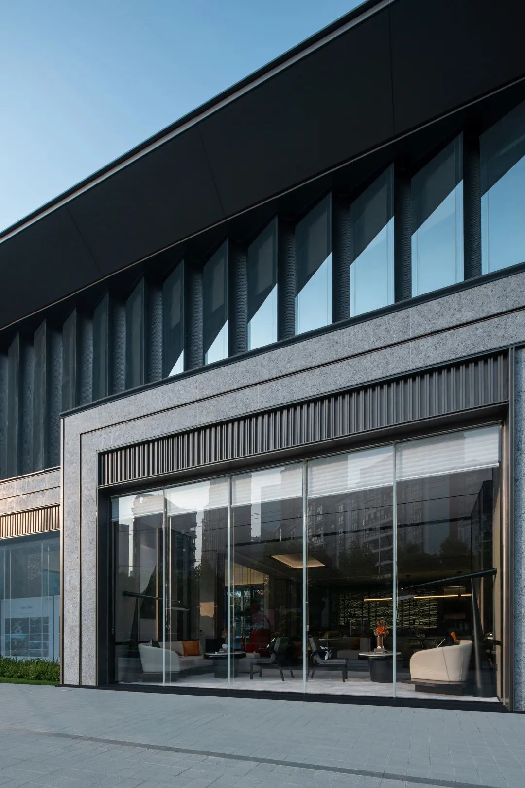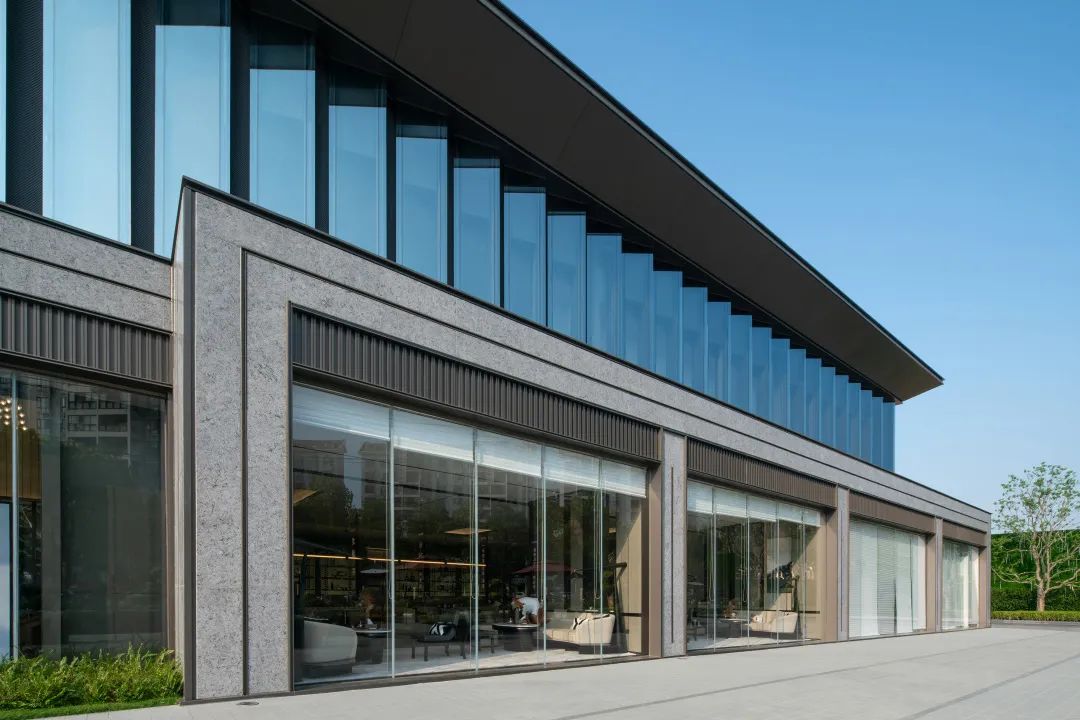 石材與金屬無處不在碰撞,不同紋理間組成獨特韻律,干凈而純粹的表達(dá)透露出精致,融合景觀,達(dá)到景觀建筑一體化,人與自然和諧共生。