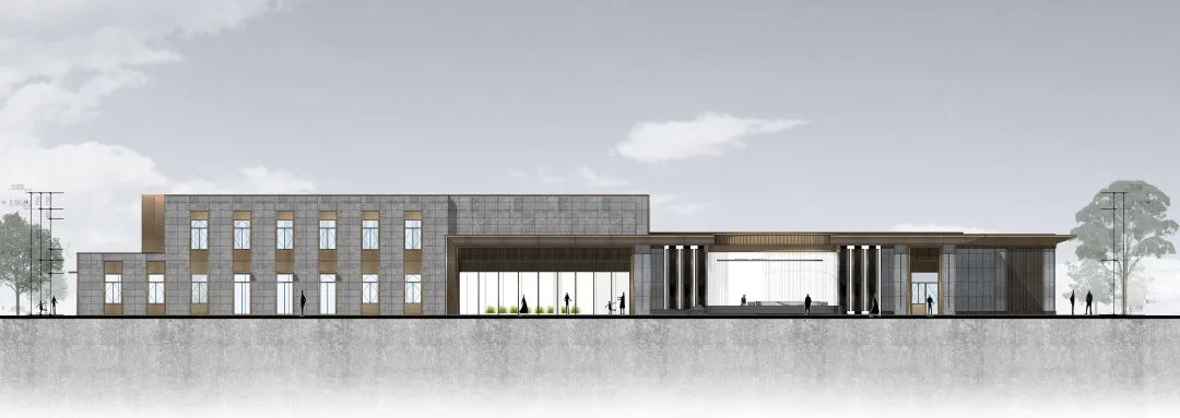 我們期望在這樣一個較長的城市界面塑造視覺亮點,作為項目于城市的亮相。建筑一層入口大門與二層反向L造型形成如同“飛鳥展翅”形成起飛之勢,給人留下了深刻的記憶點。